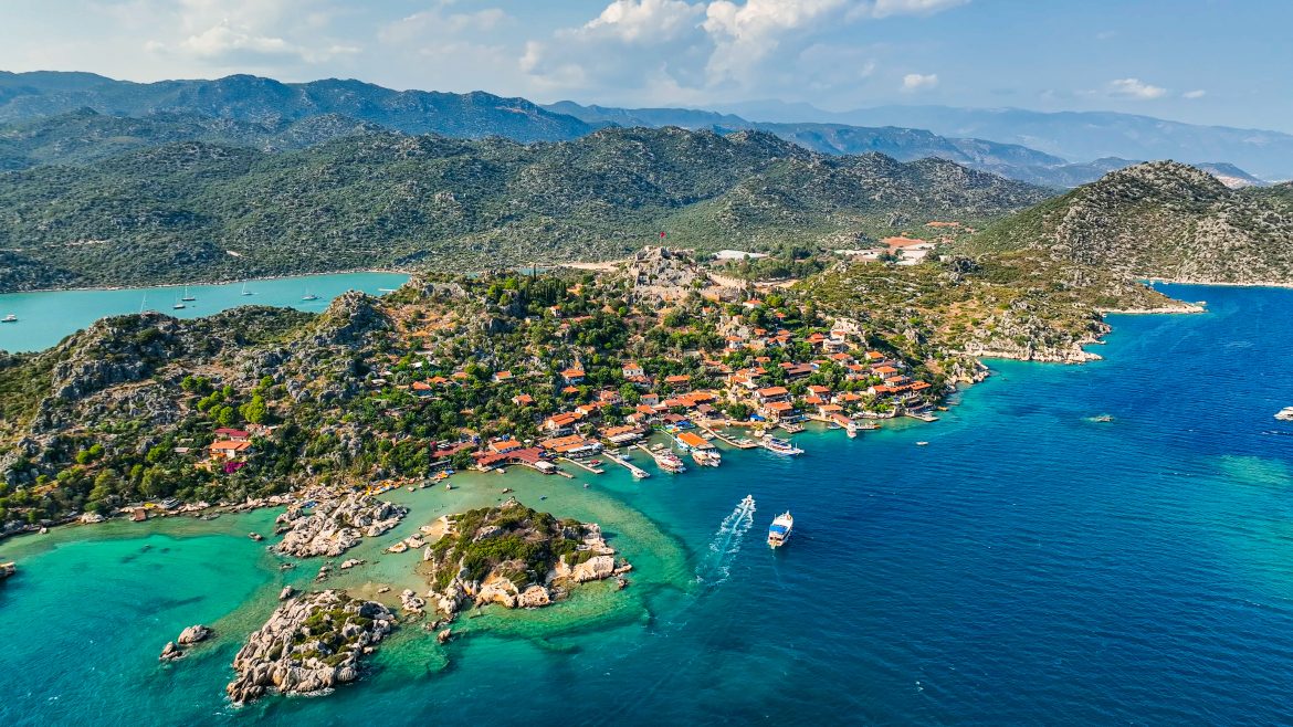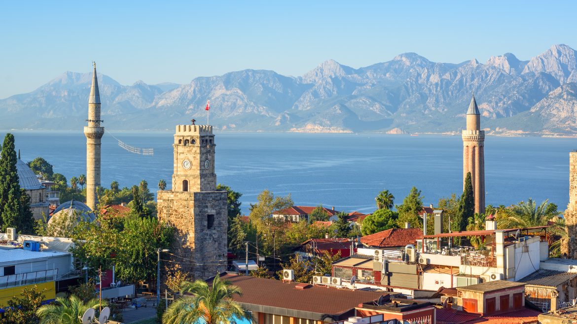 An der Türkischen Riviera liegen beliebte Küstenstädte wie Antalya, Side und Alanya mit goldenen Sandstränden, türkisfarbenem Wasser und einer reichen Geschichte.