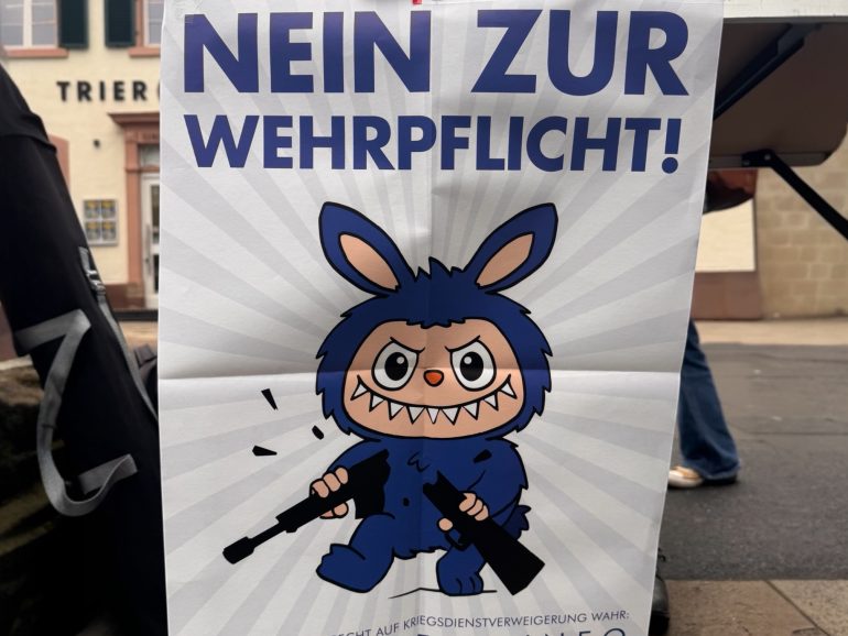 Am Freitag hat der Bundestag offiziell die Wiedereinführung des Wehrdienstes beschlossen – und dagegen wurde in Trier lautstark demonstriert. Vor der Porta Nigra kamen Schüler aus der Stadt zusammen - aber Vertreter der AG Frieden und der Deutschen Friedensgesellschaft. Unter ihnen war Marius Pletsch, Mitglied der Trierer KriegsdienstgegnerInnen – kurz DFG-VK. Er erklärt uns im Interview, welche Möglichkeiten es gibt, den Wehrdienst zu verweigern: